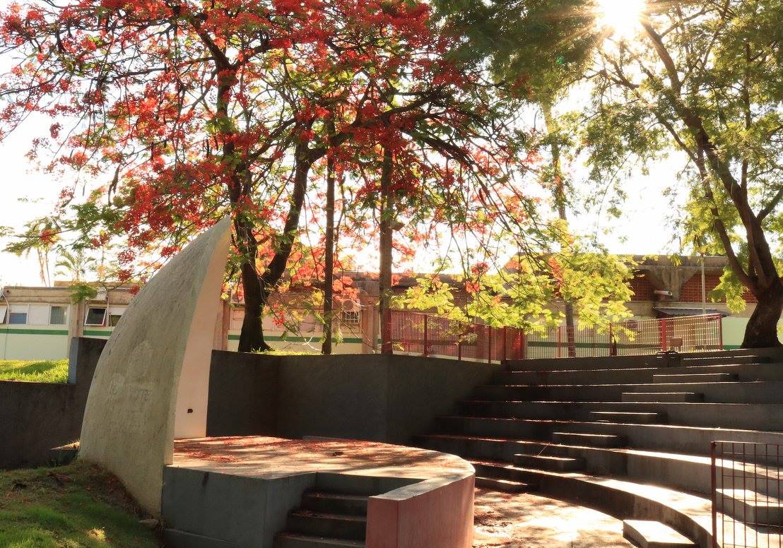 Abstract: A Concha Acústica da UFMS é um espaço livre para apresentações culturais e se encontra margeado por belas árvores e pelos prédios do antigo CCBS. Além de apresentações culturais, a concha é utilizada também para reuniões de grupos estudantis além de servir como local de descanso para muitos acadêmicos entre uma aula e outra